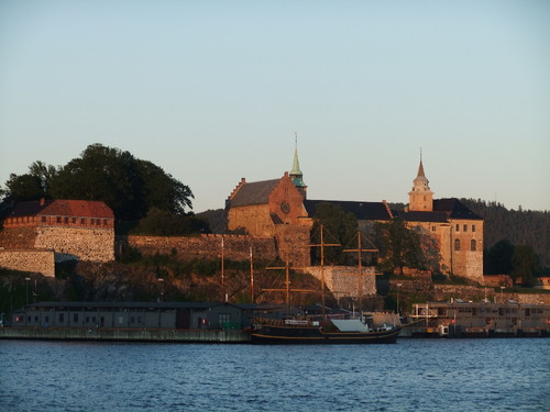 Akershus Slott é a fortaleza que defende Oslo há 700 anos, estando situada no topo de uma colina que domina o fiorde de Oslo.