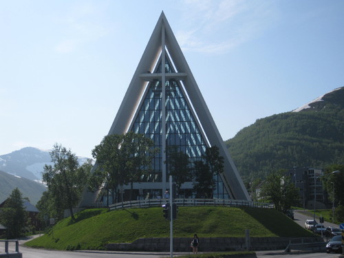 A chamada Catedral do Ártico fica no continente, em frente a Tromso. Para a visitarmos, partindo da cidade, há que atravessar a ponte que liga a ilha ao continente, e que tem mais de um quilómetro de comprimento, com um grande arco central, para deixar passar os enormes paquetes de cruzeiros.