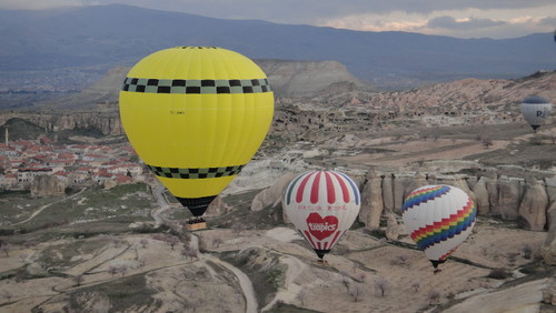 A paisagem acidentada da Capadócia é tão singular que só lá de cima se tem uma noção da sua singularidade e este passeio de balão é uma experiência única.