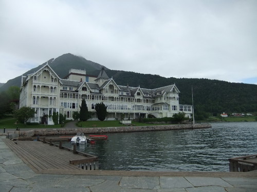 Os turistas chegam em grandes navios de cruzeiro, que mal cabem no braço do fiorde ou, então, como nós, chegam de ferry, vindos de Ballestrand, que fica mais abaixo, nas margens do Sognefjord.